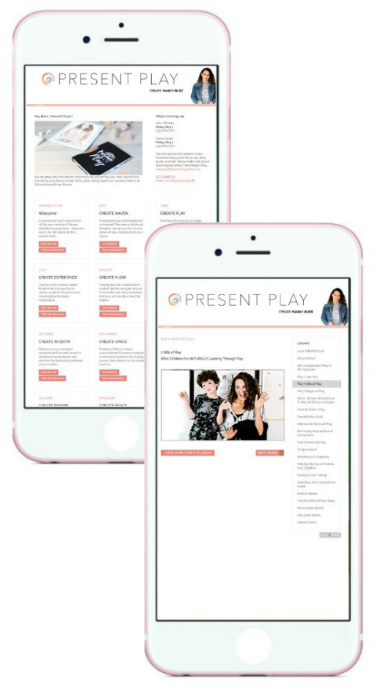 "I have been so grateful to be a Present Player during these times! Who knew that a year ago when I joined I would basically need to put everything you teach into practice to save my sanity, not just to show up as a parent, but to literally save myself from going insane in quarantine. Best money ever spent! If you are thinking about joining but are on the fence, just do it. You will not regret it!" Victoria